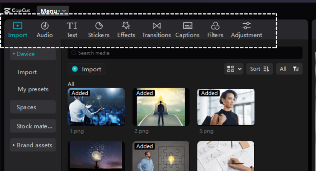 Whether on your phone or computer, start by importing your collected assets into CapCut’s library. The platform offers a similar experience across devices, so choose what’s most convenient for you.
