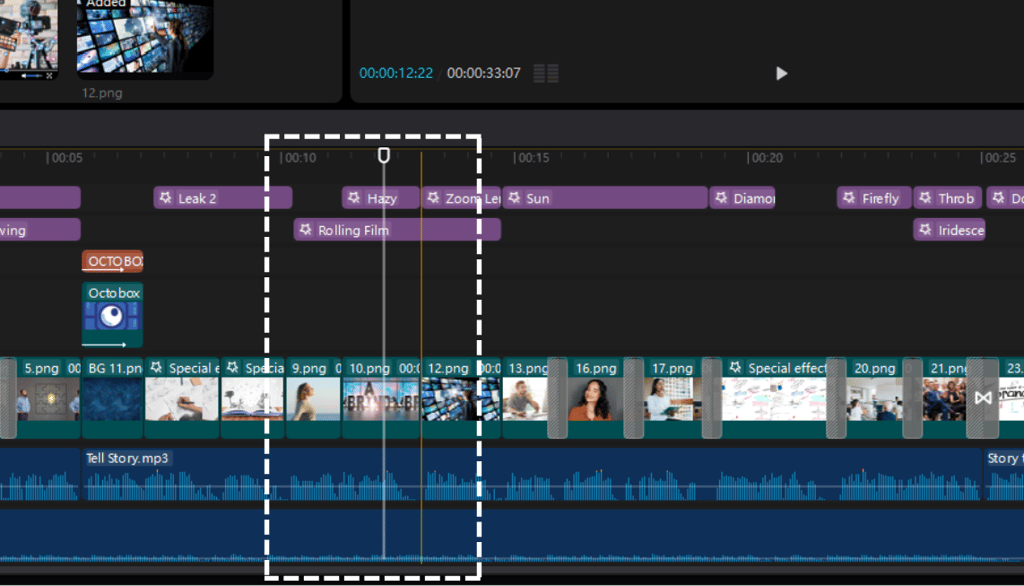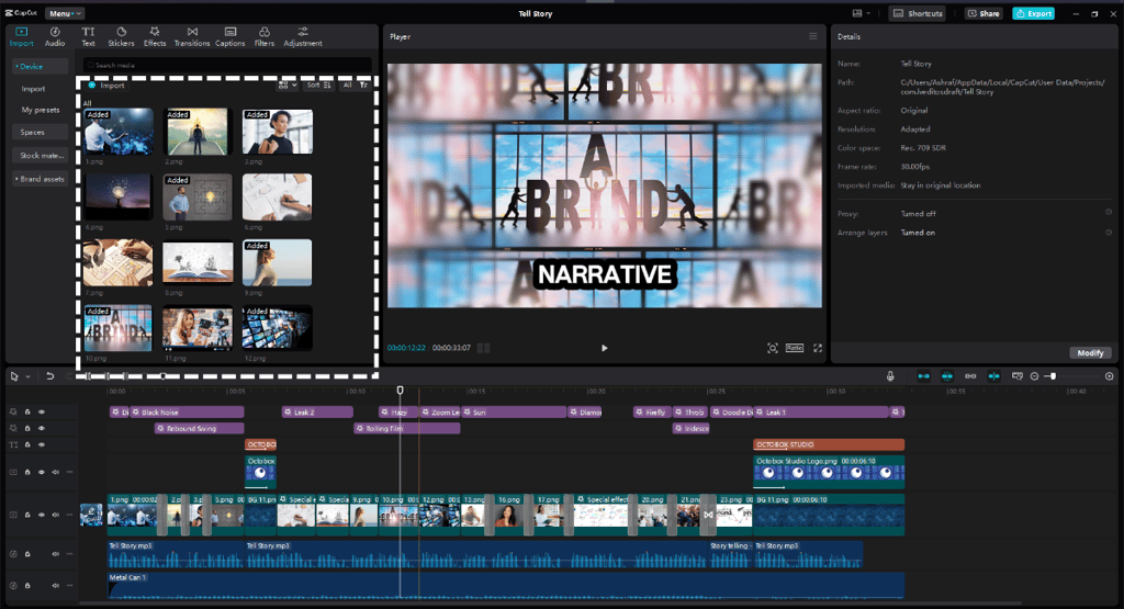 Arrange Your Timeline: Organize your clips and visuals to match the storyboard.
